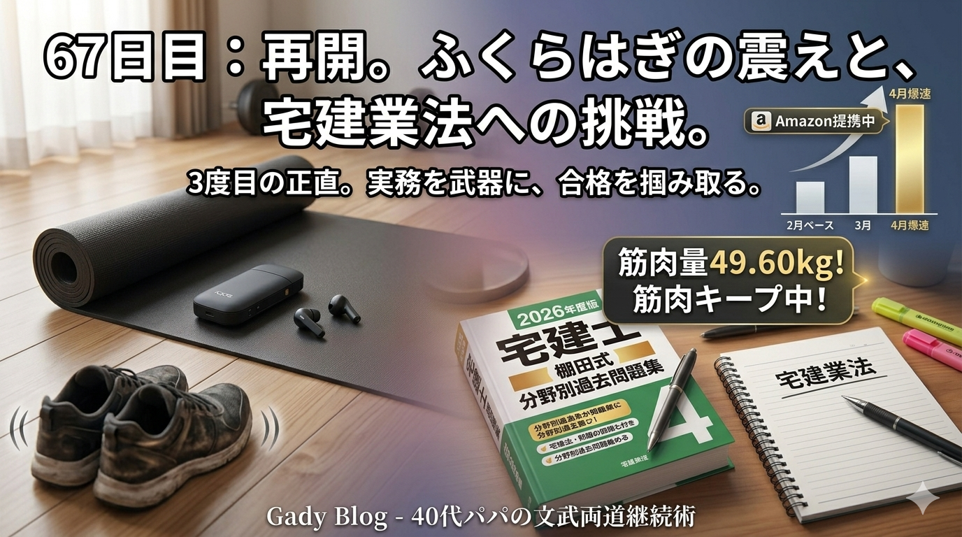 皆さんお疲れ様です。Gadyブログです。 実はここ2日間、残業続きで筋トレをお休みしていました……。仕事とプライベートの両立、その難しさを改めて痛感しましたが、今日からまたエンジンを全開にしていきます!